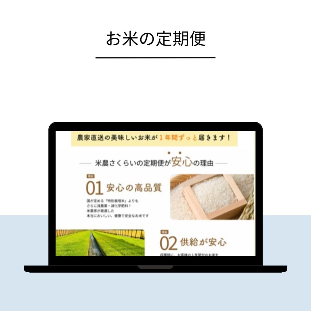 こだわりの美味しい米農家様の新商品、「お米の定期便」が注文できるランディングページの制作